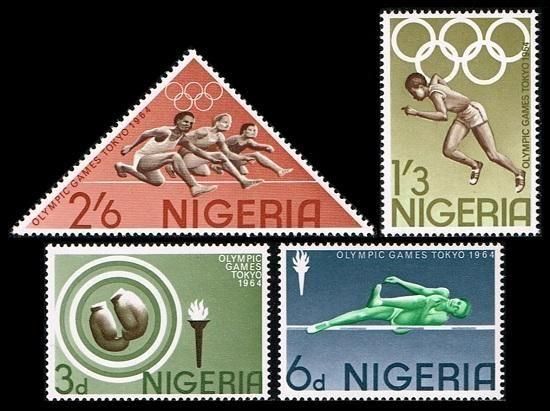 東京五輪の切手 ナイジェリア1964年4種完 変形切手