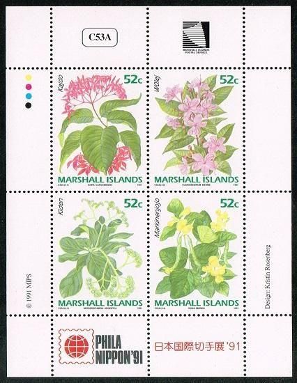 日本国際切手展の切手 マーシャル諸島1991年小型シート 花