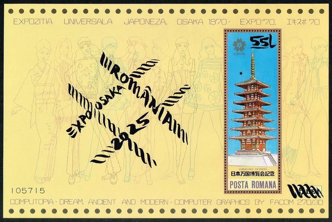 大阪万博55年メモリアルの切手 ルーマニア2025年小型シート