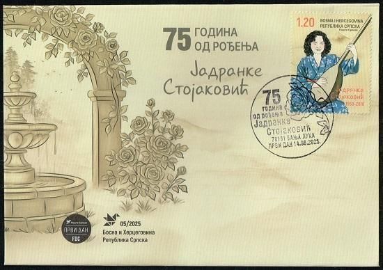 歌手ヤドランカ生誕75年の切手 ボスニア(スルプスカ)2025年初日カバー 音楽・楽器