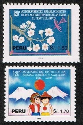 日本ペルー友好120年の切手 ペルー1993年2種完 桜の花・富士山