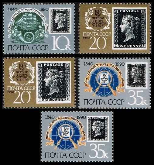 ペニーブラック150年の切手 ソ連1990年5種完 船・切手の切手