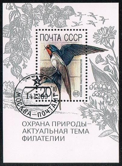 鳥の切手 ソ連1989年・自然保護小型シート(済) 花