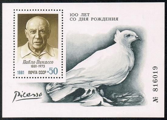 ピカソ生誕100年の切手 ソ連1981年小型シート 絵画・鳥