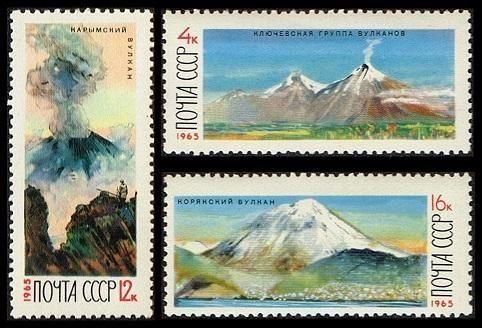 カムチャツカ地域の火山の切手 ソ連1965年3種完