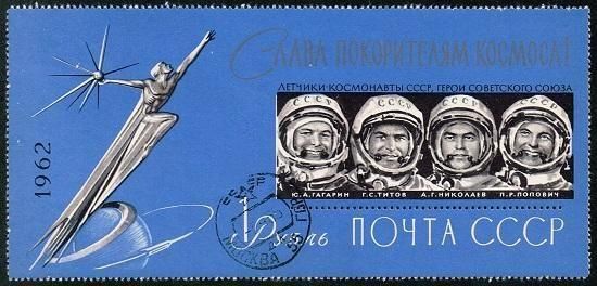 ガガーリンら宇宙飛行士の大型切手 ソ連1962年1種(済)
