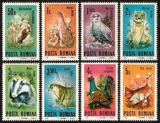 生物保護の切手 ルーマニア1985年8種完 鳥・梟